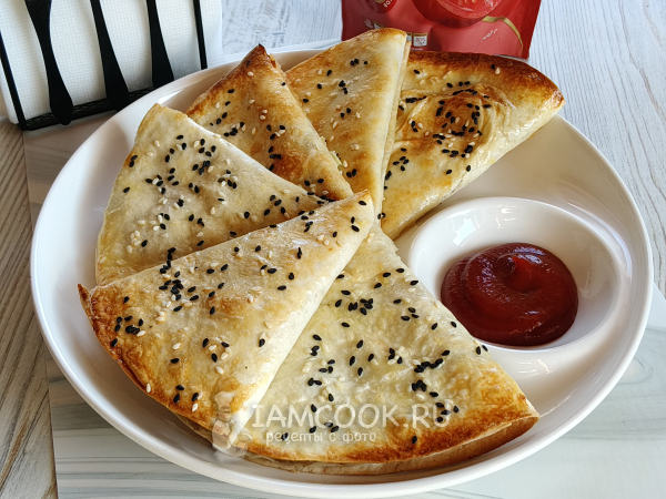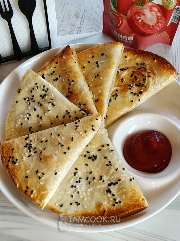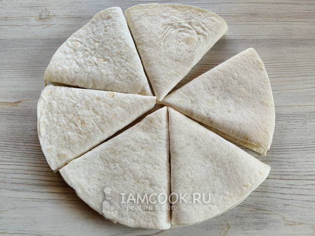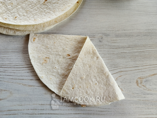 Каждую лепешку разрезать на две части.