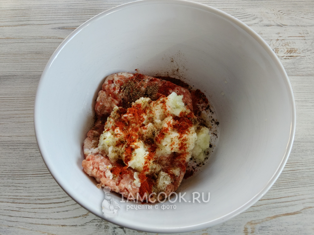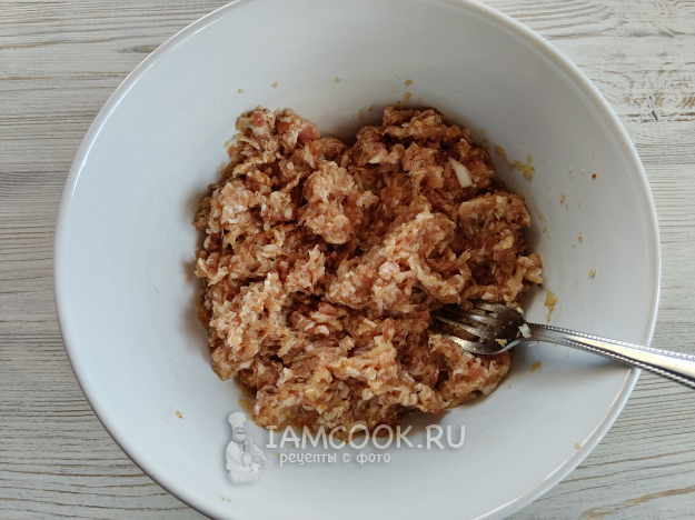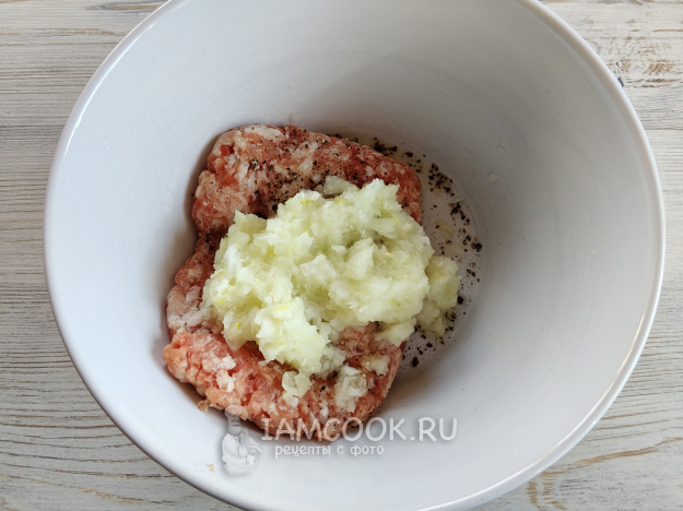 Измельчить в фарш лук.