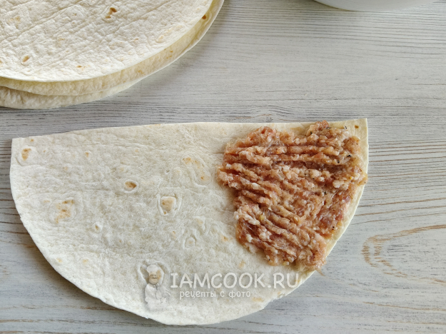 На край положить ложку начинки, разровнять в тонкий слой.