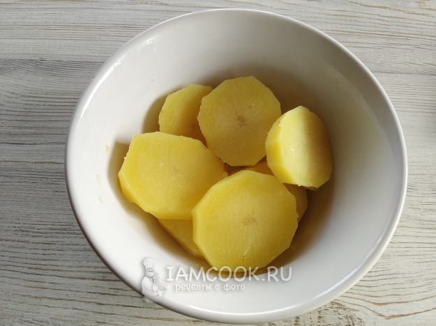 В первую очередь надо отварить картофель до мягкости. Воду слить.