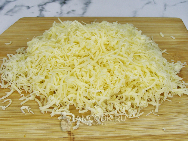 Твёрдый и плавленый сыры натираем на мелкой тёрке.