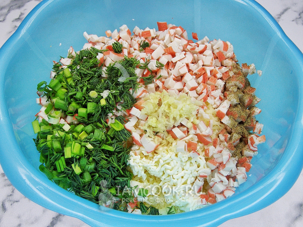 Добавляем майонез и ещё раз всё хорошо перемешиваем.