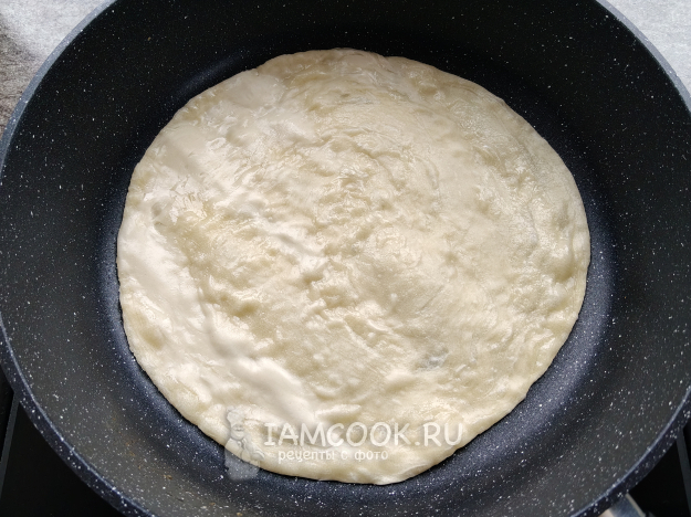 Мороженую лепешку положить на горячую сковороду.