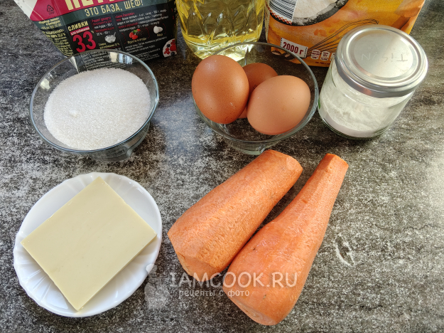 Вот такие ингредиенты нам нужны для приготовления морковного пирожного со сливочным кремом. Моркови достаточно 1 шт.