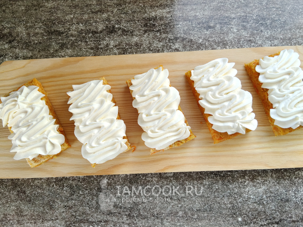 Отсадить крем на морковные ломтики.