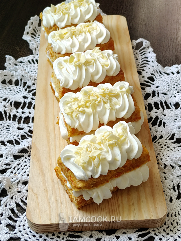 Морковное пирожное убрать в холодильник на пару часов, а после можно подавать к столу.