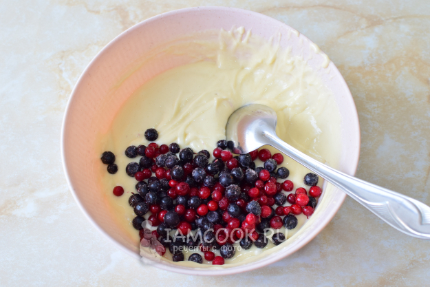 Вмешайте в тесто ягоды.