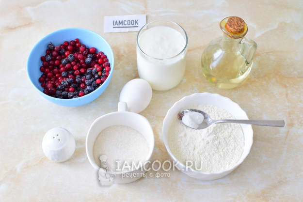 Чтобы приготовить вафли с ягодами, соберите необходимые ингредиенты. Муку просейте через сито, чтобы насытить её кислородом. Ягоды можно взять замороженные, но не крупные.
