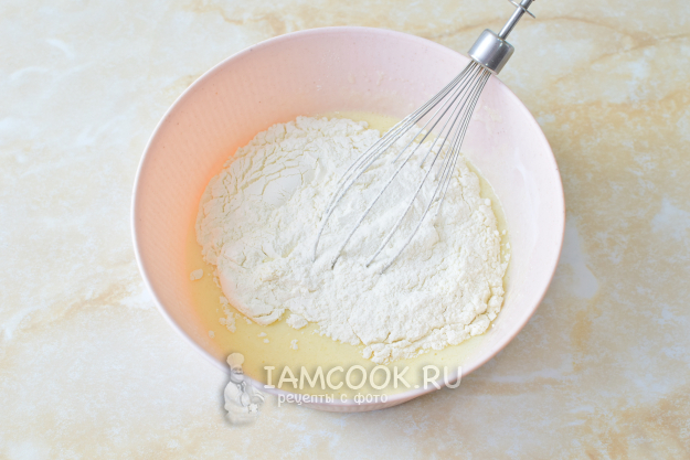 Постепенно подсыпайте муку с содой и замешивайте тесто.