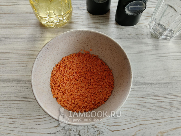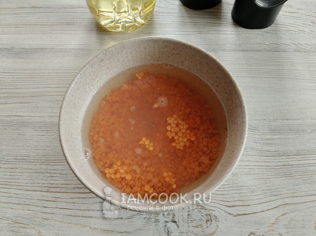 Чечевицу залить кипятком (250 мл). Оставить на 15-20 минут.