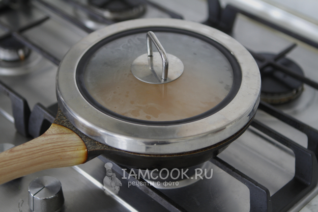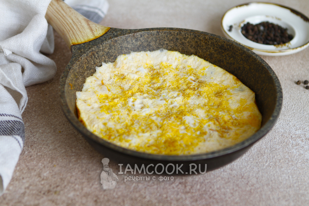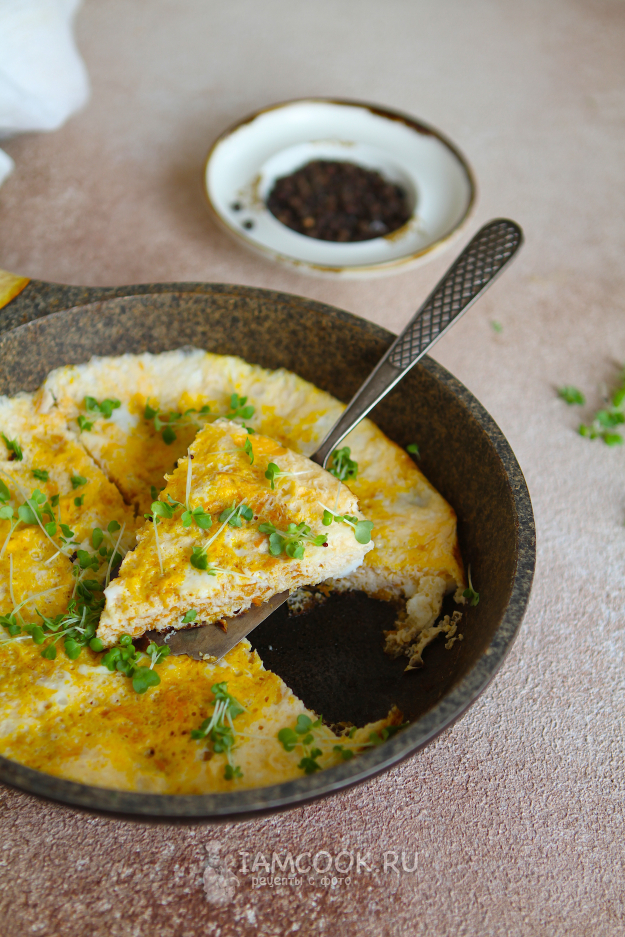 Уменьшите огонь. Сковороду закройте крышкой. Готовьте омлет примерно 7-10 минут, не открывая крышку.