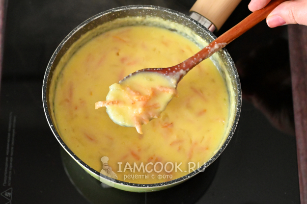 Осталось размешать соль, и манка с морковью и луком готова, можно подавать её к столу.