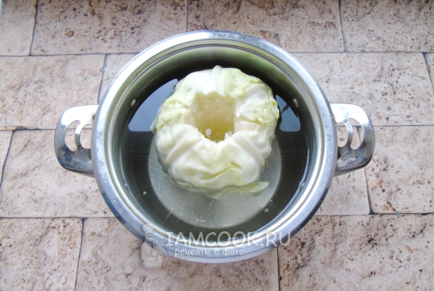Доведите до кипения и варите 6-7 минут, так, как обычно варите капусту для голубцов. Не переварите. Листья должны быть эластичными, но не мягкими.