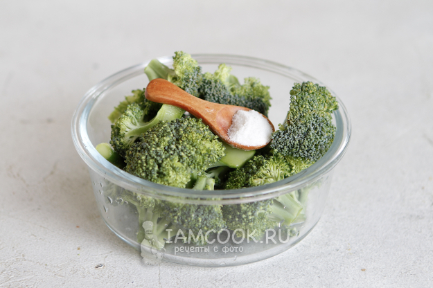 Хорошо промойте под прохладной проточной водой и откиньте на дуршлаг. Переложите капусту в глубокую чашу и слегка посолите.