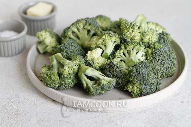 Соберите все продукты по списку для приготовления капусты брокколи сувид (су-вид).