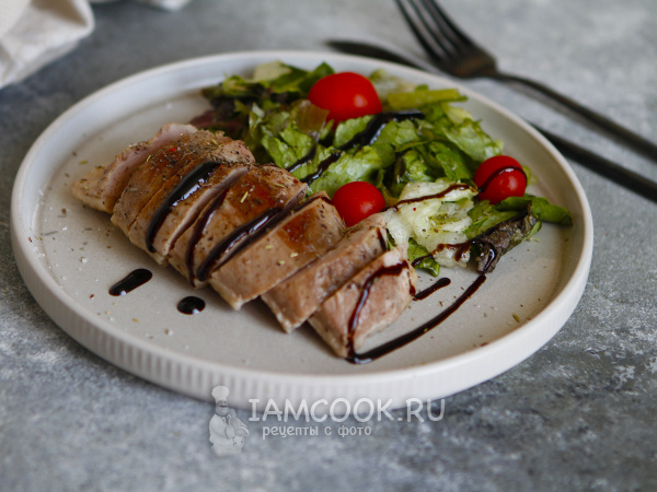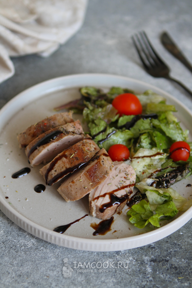 Она получилась очень мягкой и сочной. Подавайте ее со свежими овощами и зеленью.
