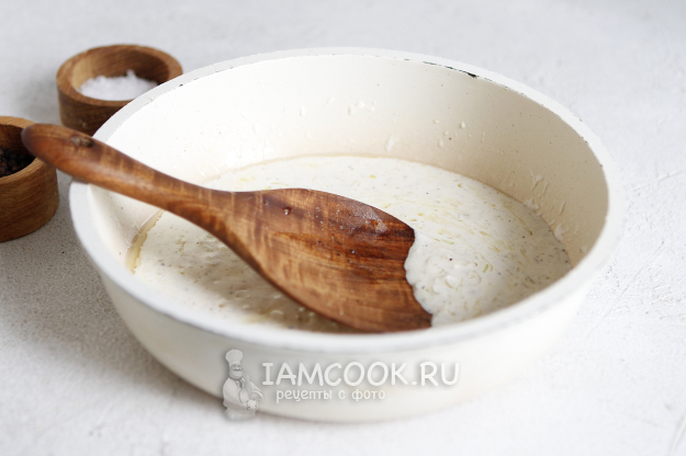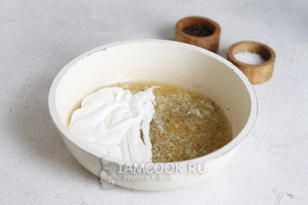 Влейте сливки для соуса. В идеале добавить сливки 20-23%.