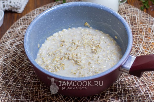Поставьте на плиту, доведите до кипения и варите 3-5 минут, пока хлопья не набухнут.