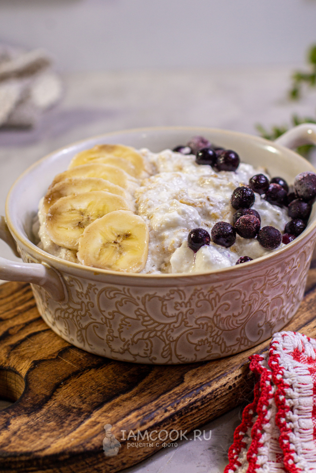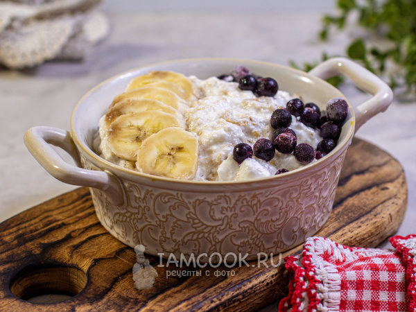 Дополните кашу бананом и ягодами и подавайте к столу. Приятного аппетита!