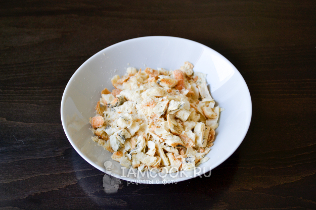 Слоеное печенье поломайте руками до крупной крошки/кусочков.