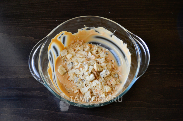 В оставшийся крем я всыпала крошку печенья.