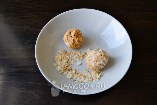 Ложкой перемешайте крошку с кремом. Скатайте колобки и обваляйте их в мелкой крошке печенья. Это второй способ, как можно сделать пирожное.