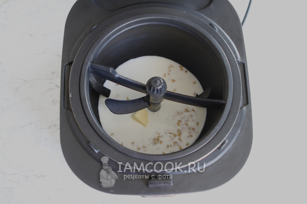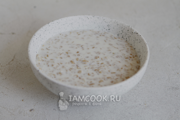Залейте овсянку молоком.