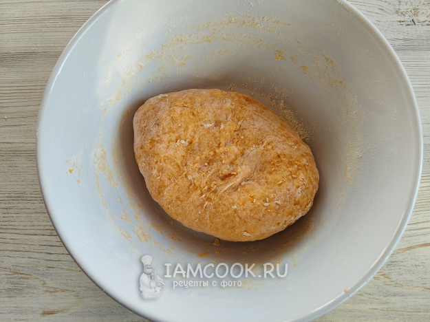 Разделить тесто на кусочки, скатать жгуты. Присыпать мукой.