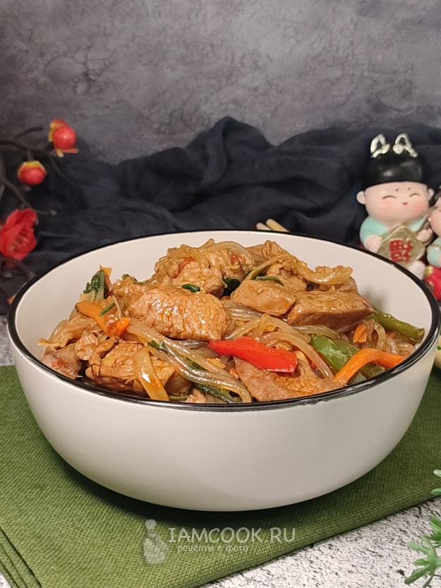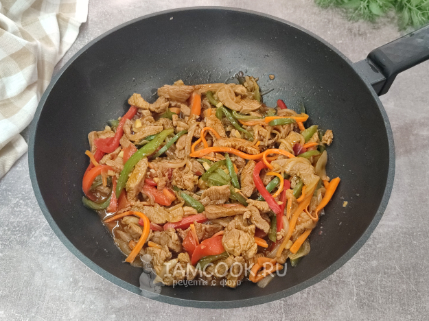 Все тщательно перемешиваем, прогреваем вместе пару минут, и вок с индейкой готов!