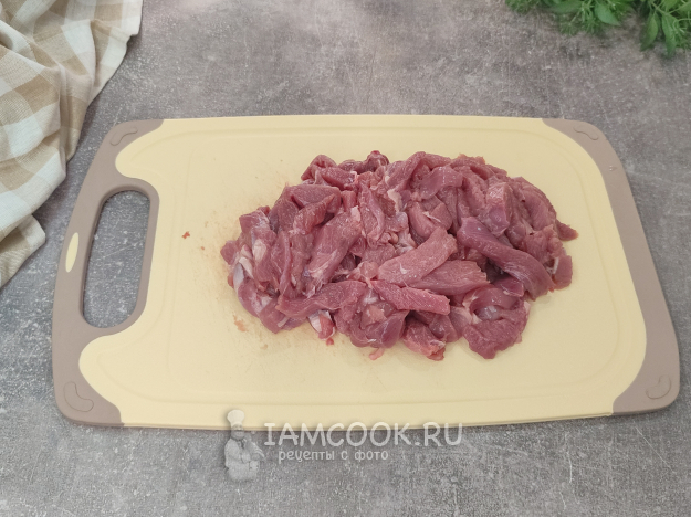Филе индейки также нарежем соломкой.