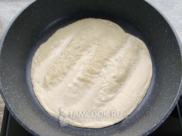 Лепешку достать из морозилки, положить в сковороду.