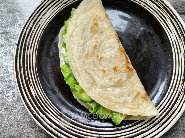 Лепешка роти с авокадо готова.
