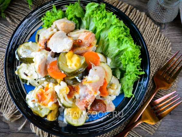 Овощи сполосните и почистите. Цукини и морковь нарежьте средними колечками, а лук - полукольцами.