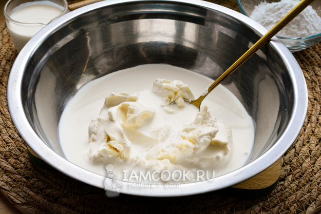 Следом влейте охлажденные жирные сливки (33% жирности).