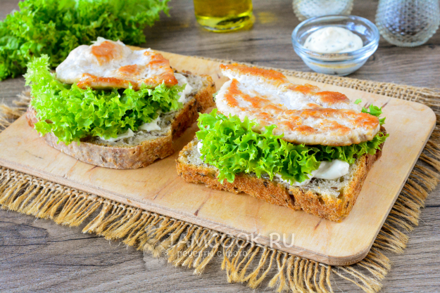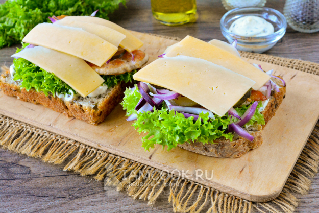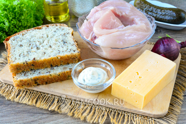 Соберите все ингредиенты для приготовления сэндвича с курицей и сыром.