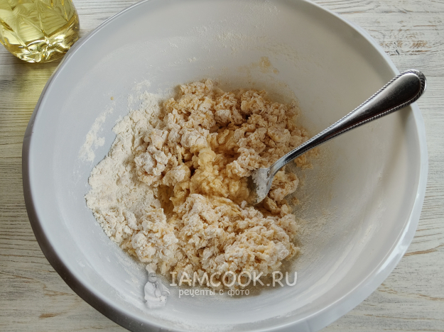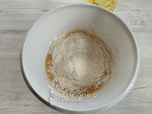 В процессе замешивания влить масло.