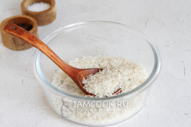 Отмерьте необходимое количество риса, переберите его и промойте. Рис промываем несколько раз до чистой воды.