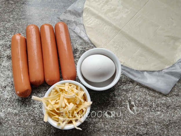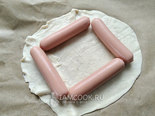 Сделать из сосисок квадрат, как на фото. Немного подождать, пока лепешка станет мягкой.