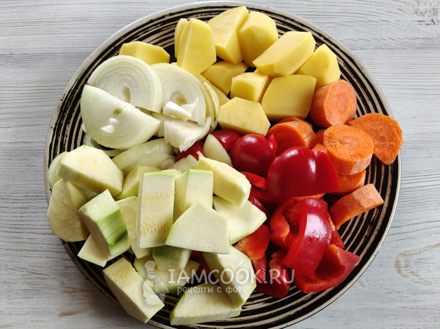 Овощи для этого блюда могут варьироваться по вкусу или наличию.