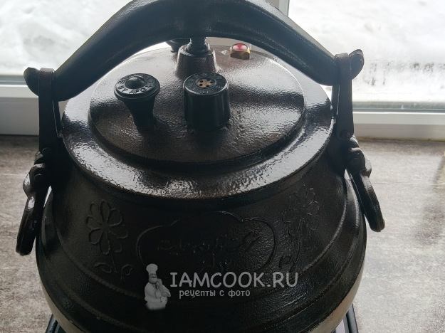 Снимать с огня можно спустя 20 минут (на протяжении всего времени вы должны видеть, что давление внутри казана хорошее).