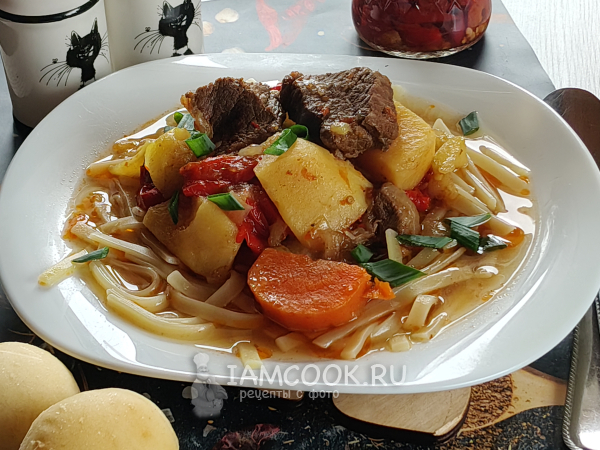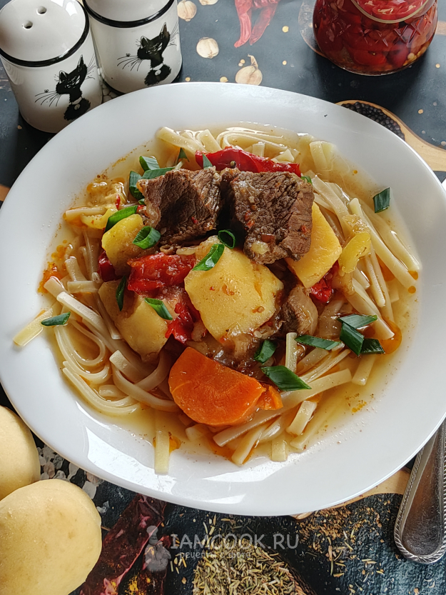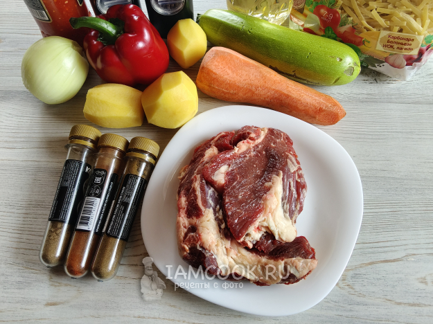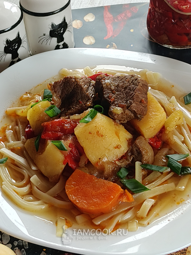 Лагман в афганском казане на плите сегодня будем готовить из такого набора продуктов.