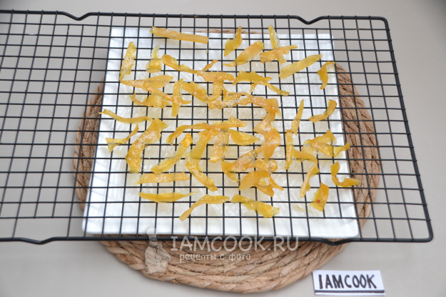 Лимонные цукаты выложите на решетку и подсушите. Чтобы ускорить процесс, можно подсушить в духовке при температуре 50-70 градусов, примерно 30 минут.
