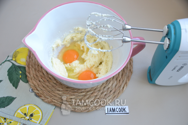 Добавьте 2 яйца и взбивайте еще около 3 минут.