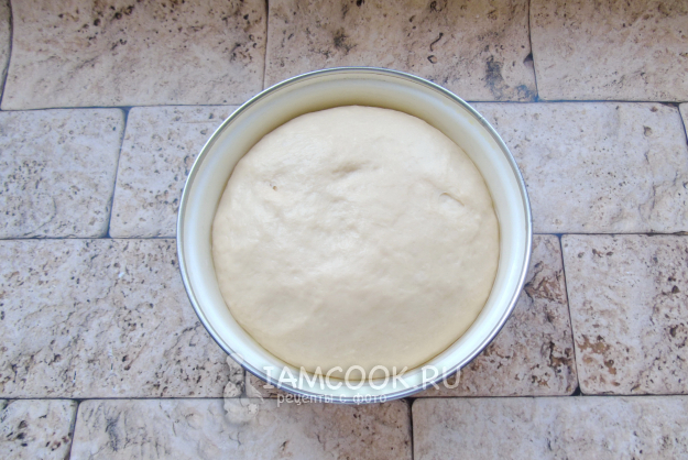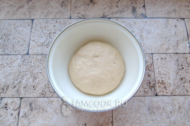 Перемешивайте тесто сначала ложкой в миске, а когда оно соберется в ком, переложите на стол, присыпанный мукой. Замесите мягкое, эластичное тесто. Накройте миску пищевой пленкой или полотенцем и поставьте в теплое место.