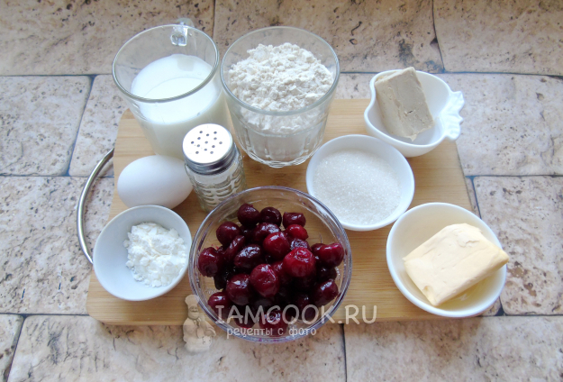 Соберите ингредиенты для приготовления рулета с вишней из дрожжевого теста.