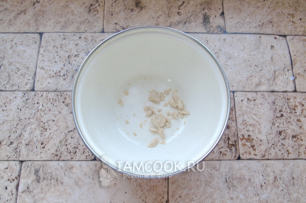 Дрожжи накрошите в миску.