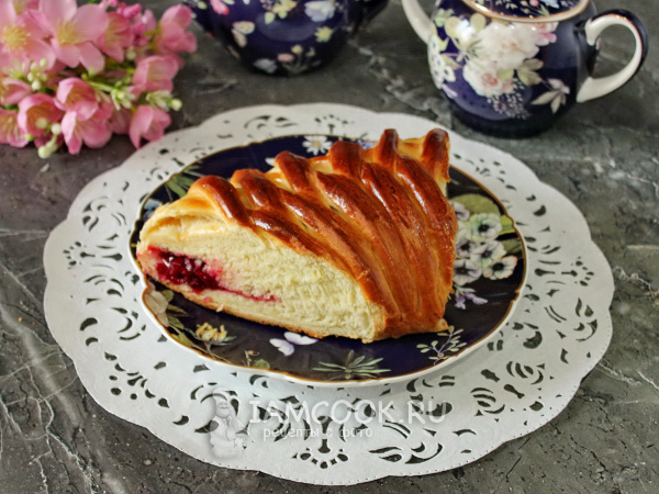 Рулет с вишней из дрожжевого теста готов. Остудите его, нарежьте и подавайте к столу.