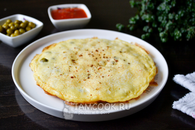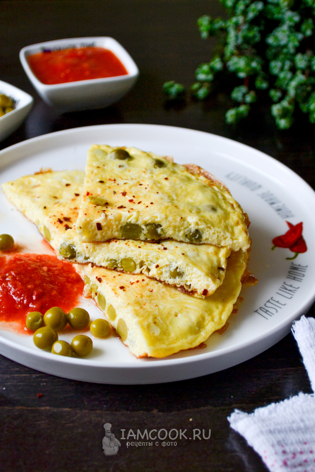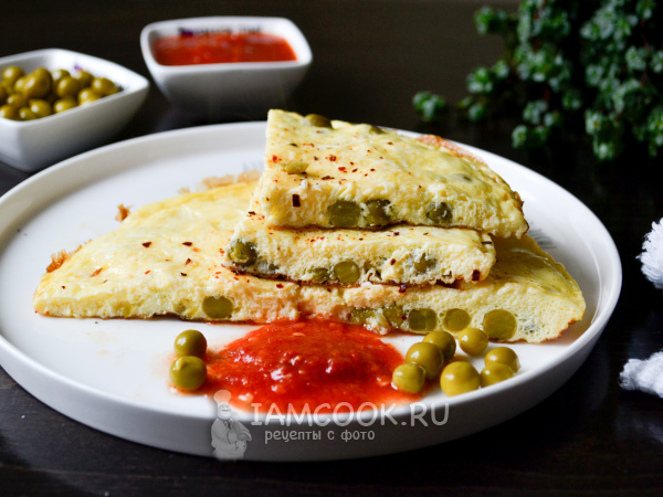 Омлет с консервированным горошком и сыром готов.