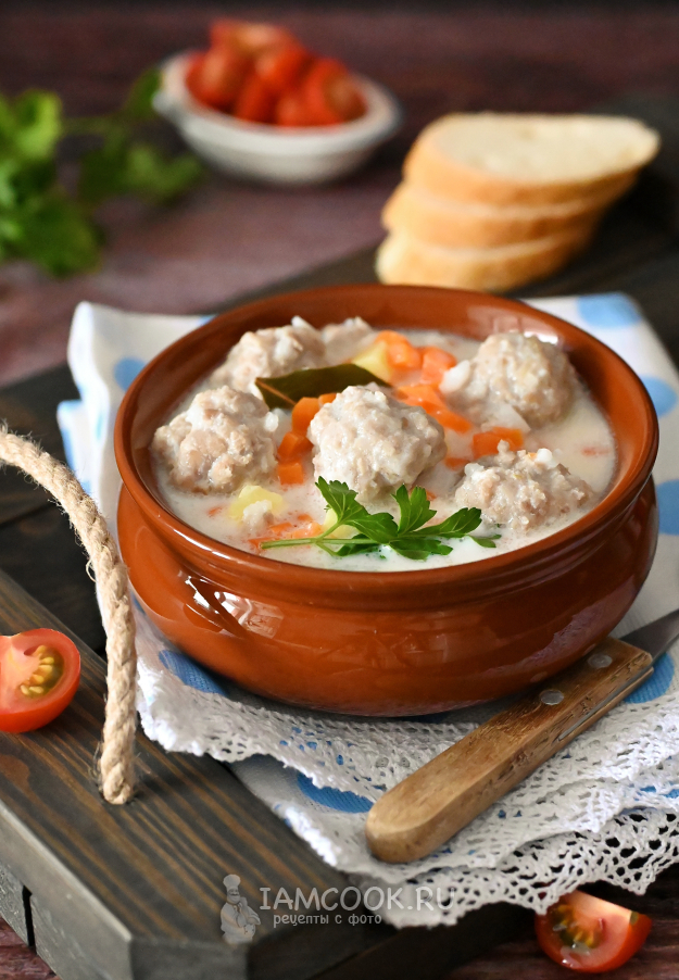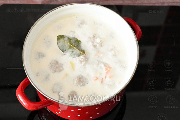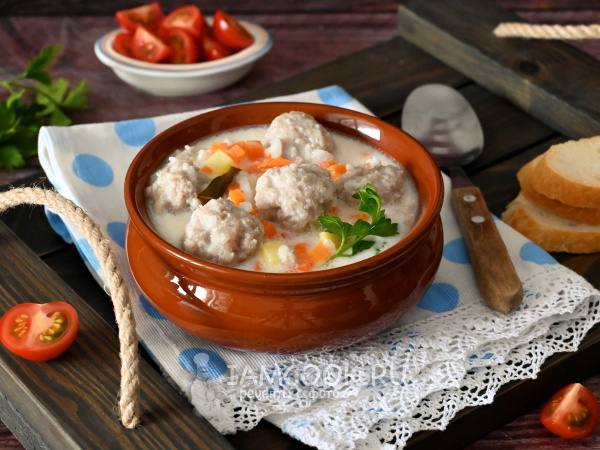 Молочный суп с фрикадельками готов. Зовите всех к столу!