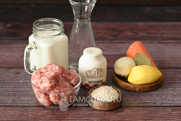 Вот такой набор продуктов вам потребуется для приготовления молочного супа с фрикадельками.